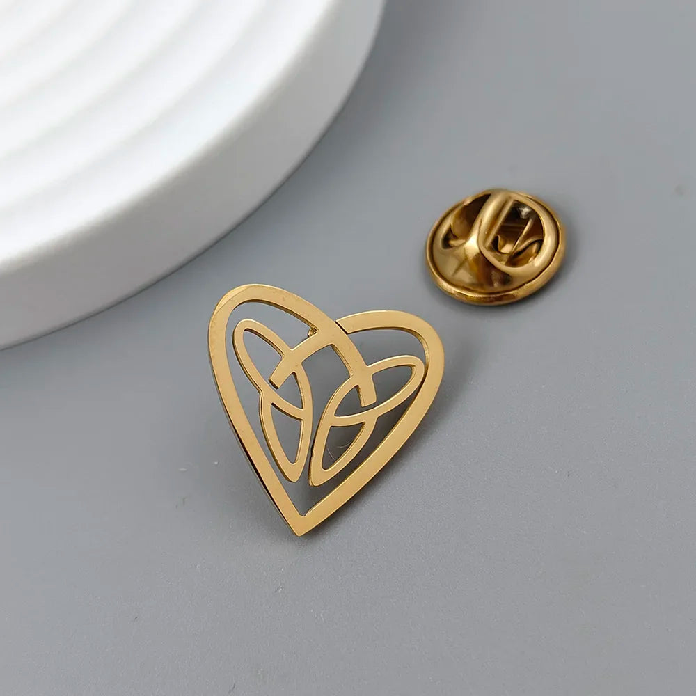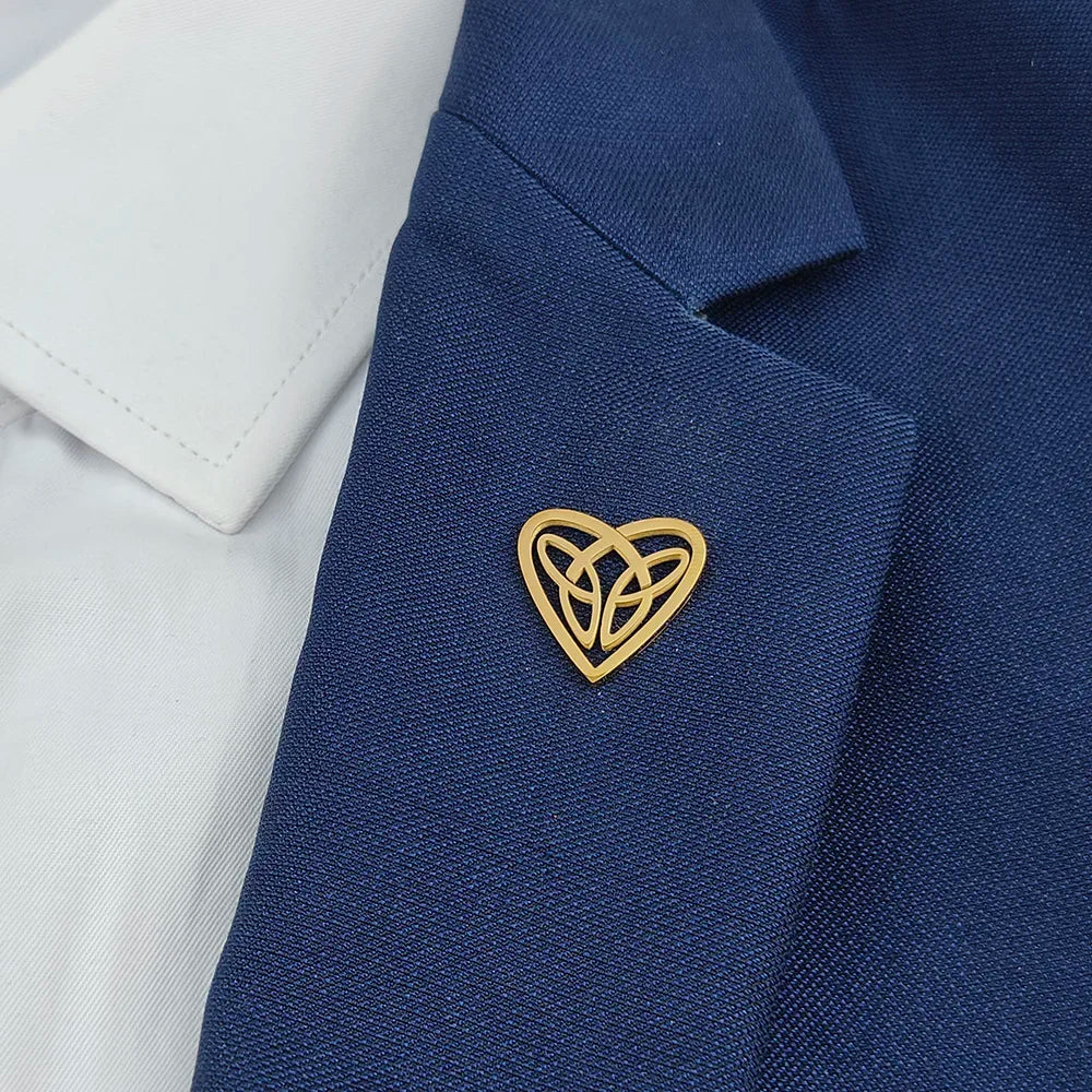 Premium Love Heart Celtic Knot brooch in 316L stainless steel with 18K gold plating. Perfect for weddings, groomsmen gifts & Celtic celebrations.