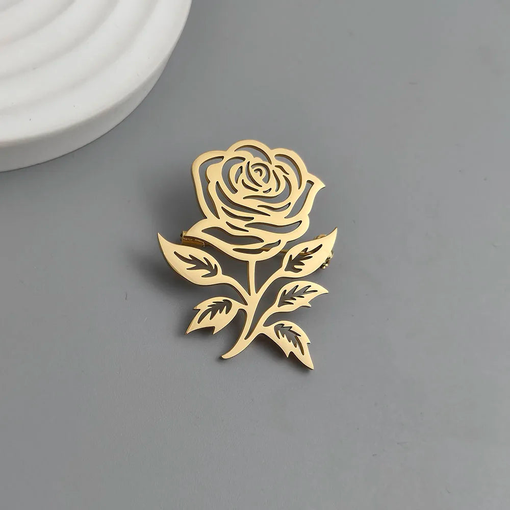 Rose Hollow Lapel Pin – 18K Gold Plated Stainless Steel Brooch for Suits & Formal Wear