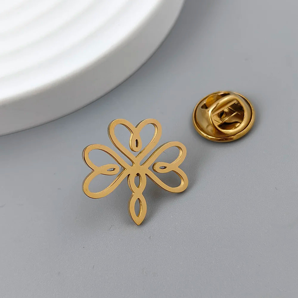 Premium Three-Leaf Love Heart brooch in 316L stainless steel with 18K gold plating. Perfect for weddings, groomsmen gifts & formal occasions.